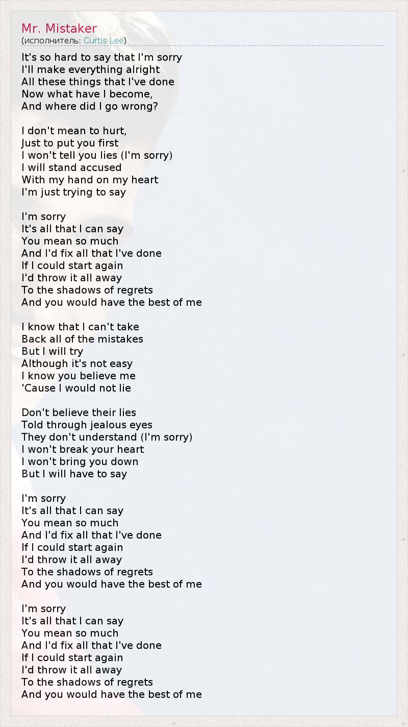 А как ты думаешь, о чем песня "Mr. Mistaker" ?