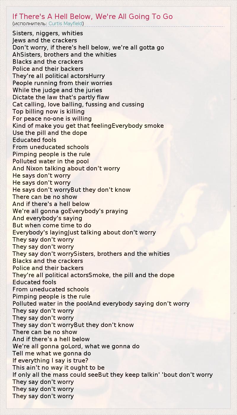 ГлавнаяИсполнителиCurtis MayfieldIf There's A Hell Below, We're All Going To Go