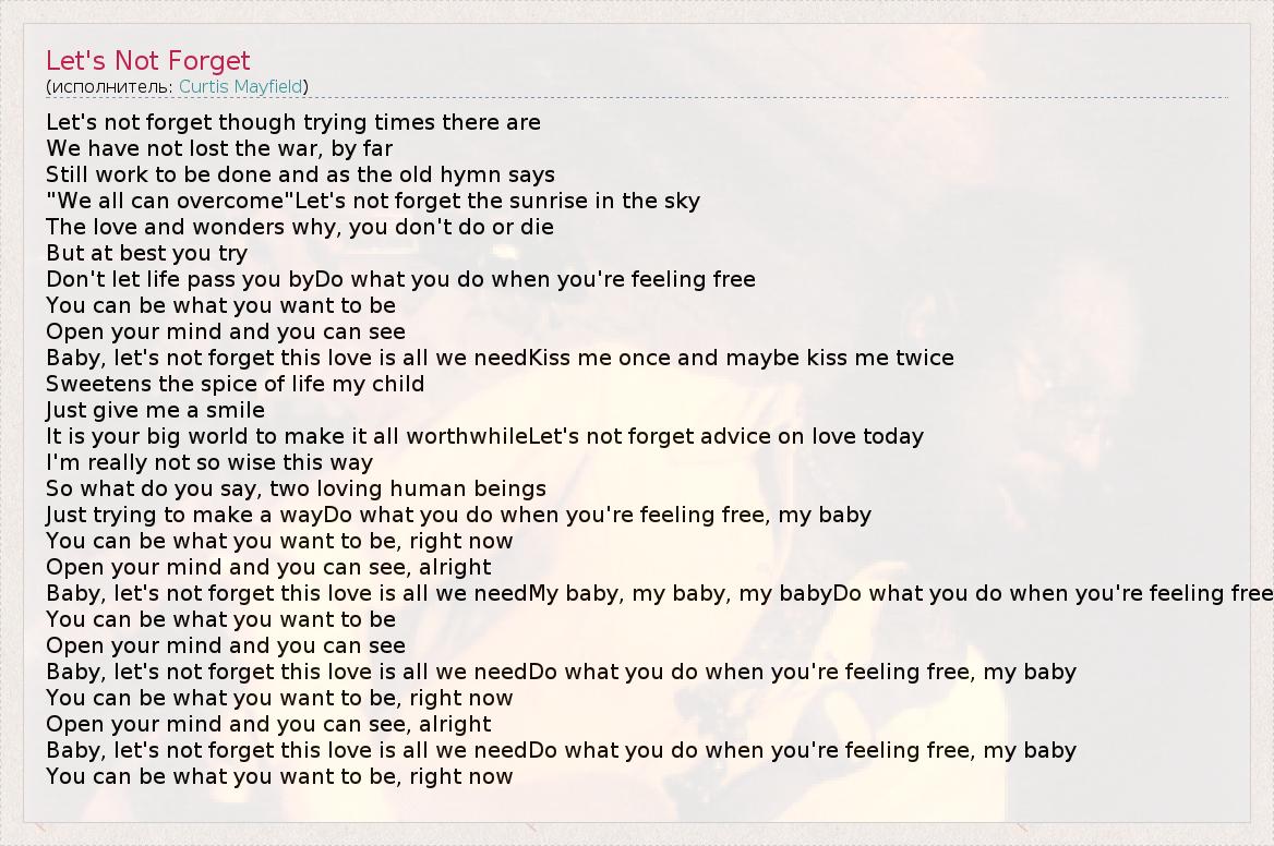 А как ты думаешь, о чем песня "Let's Not Forget" ?