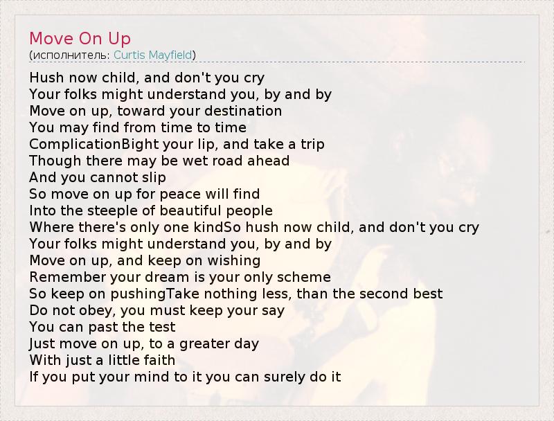 Это интересно:Кёртис Мэйфилд (Curtis Mayfield, 3 июня 1942 — 26 декабря 1999) — музыкант (вокалист, гитарист, пианист, саксофонист, ударник) и идеолог афроамериканской музыки (ритм-энд-блюз, соул, фанк).В конце 1950-х гг. Мэйфилд создал с Джерри Батлером и другими товарищами по чикагскому хору вокальный коллектив The Impressions. Большая часть репертуара этой влиятельной группы была написана Мэйфилдом, который исполнял... продолжение