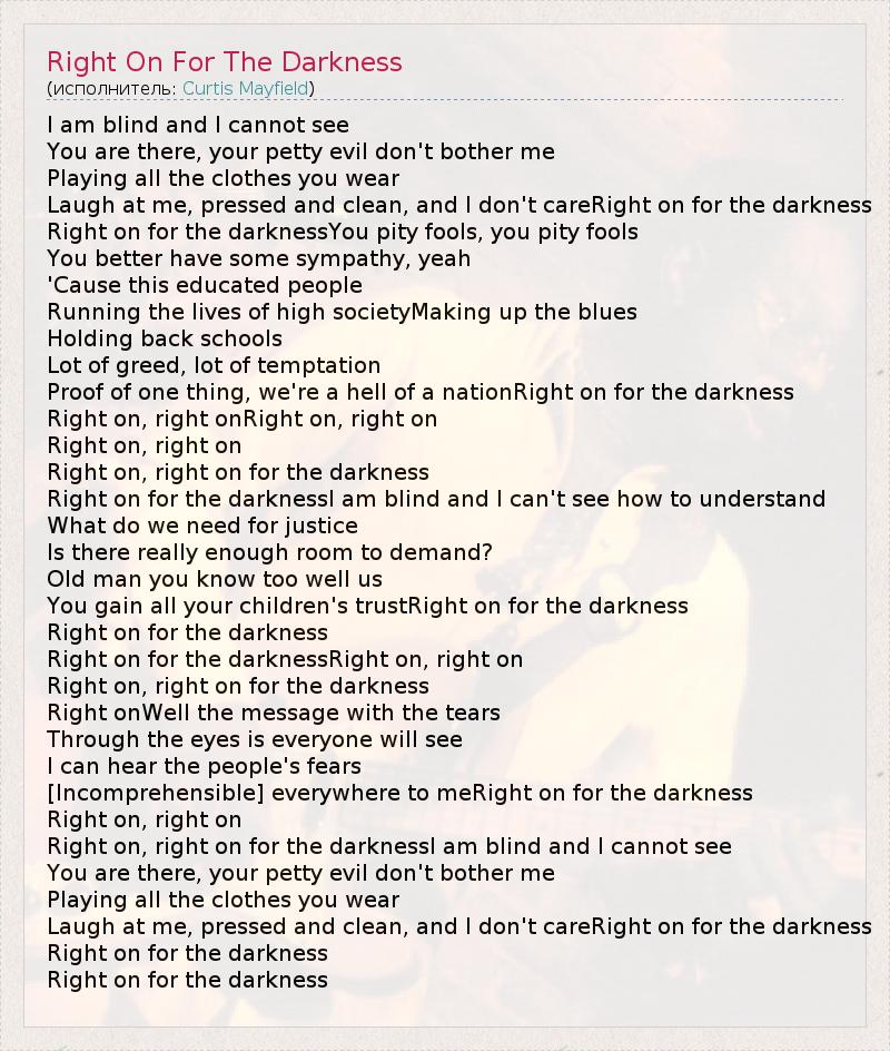 Right on, right on for the darknessI am blind and I cannot see