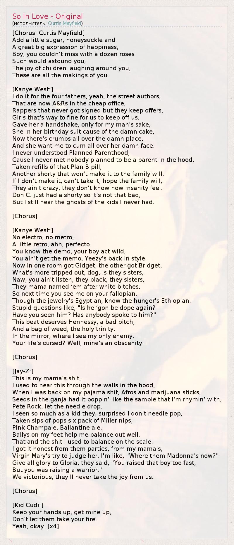 А как ты думаешь, о чем песня "So In Love - Original" ?