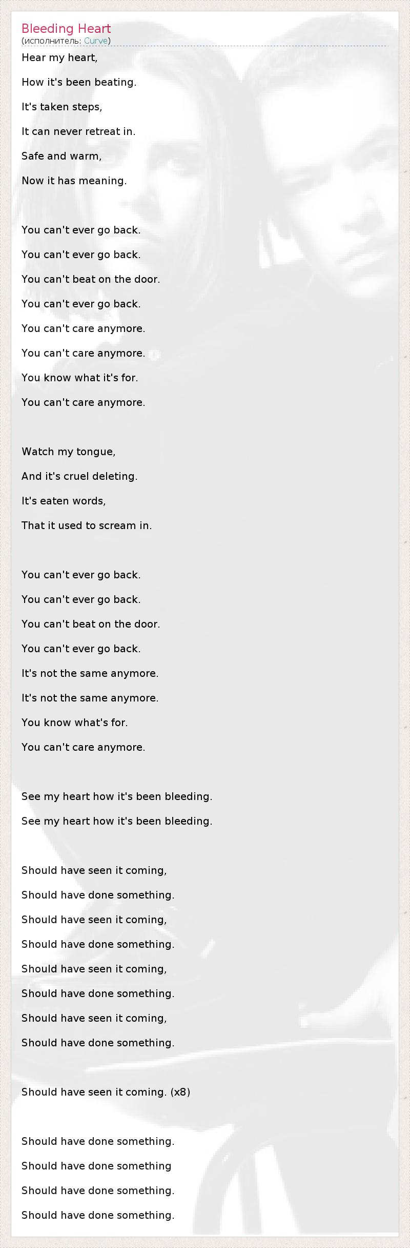 А как ты думаешь, о чем песня "Bleeding Heart" ?