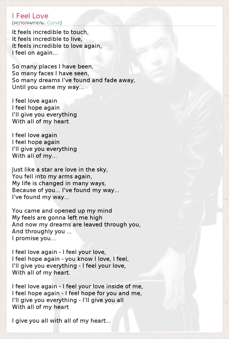Я снова чувствую надежду - ты знаешь, я люблю, я чувствую,