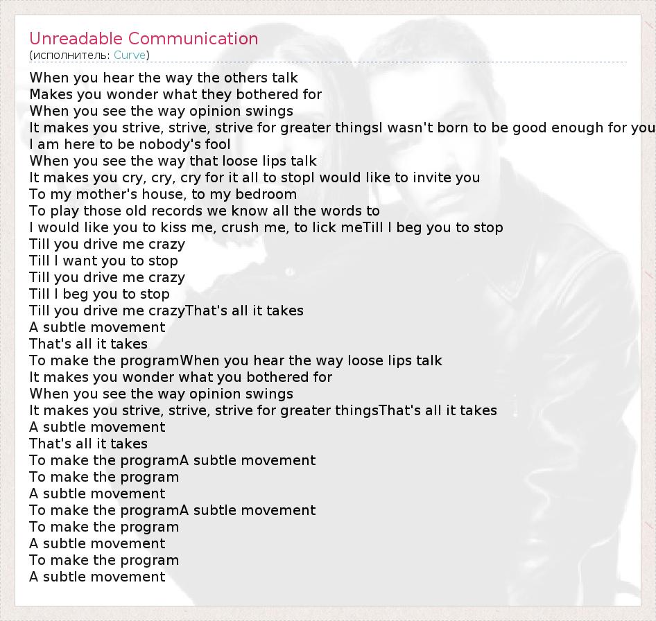 ГлавнаяИсполнителиCurveUnreadable Communication