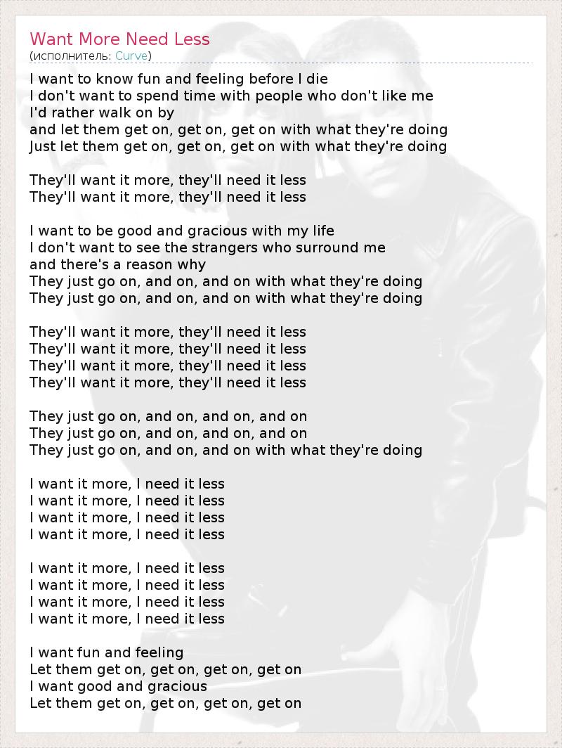 А как ты думаешь, о чем песня "Want More Need Less" ?