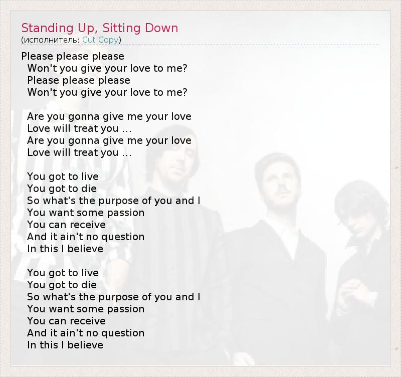 А как ты думаешь, о чем песня "Standing Up, Sitting Down" ?