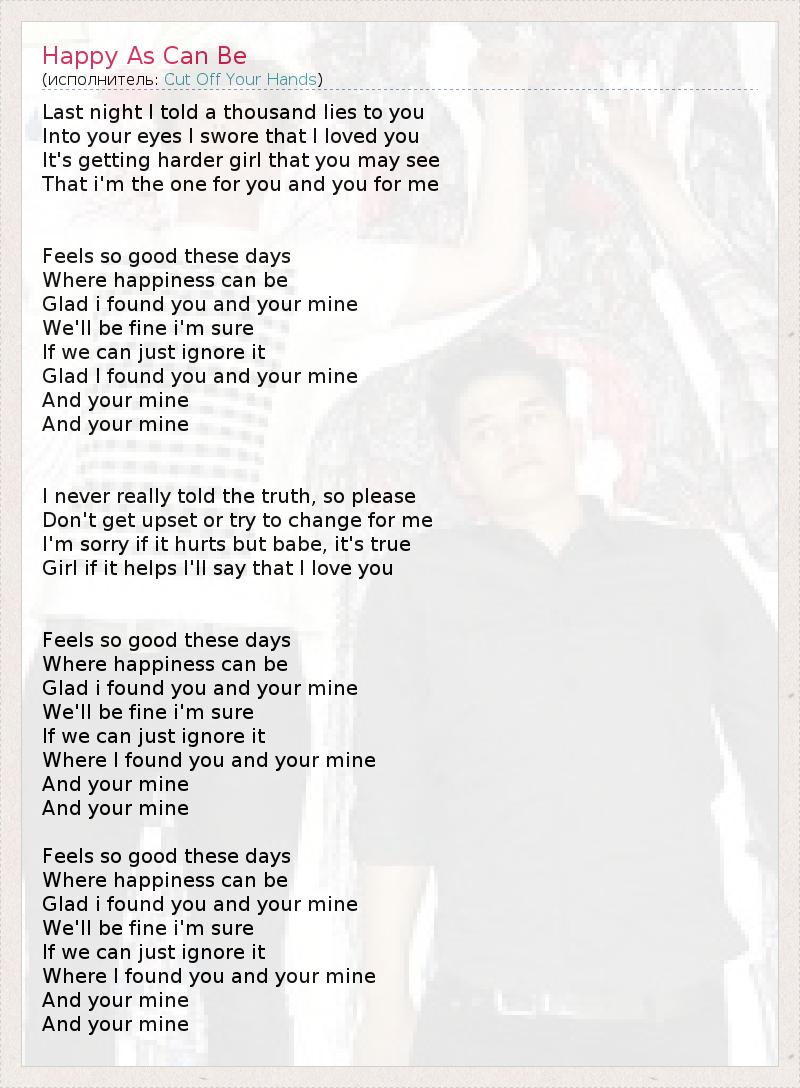 А как ты думаешь, о чем песня "Happy As Can Be" ?