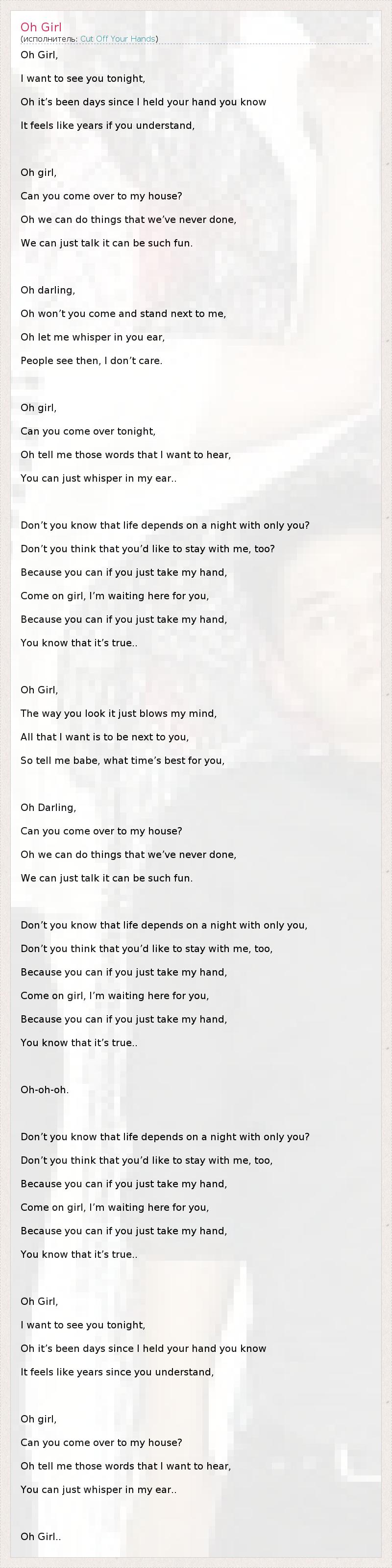 А как ты думаешь, о чем песня "Oh Girl" ?