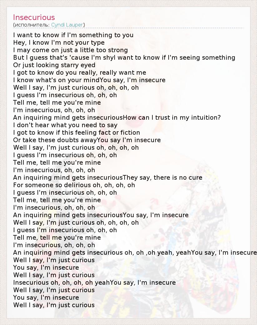 An inquiring mind gets insecurious oh, oh ,oh yeah, yeahYou say, I'm insecure