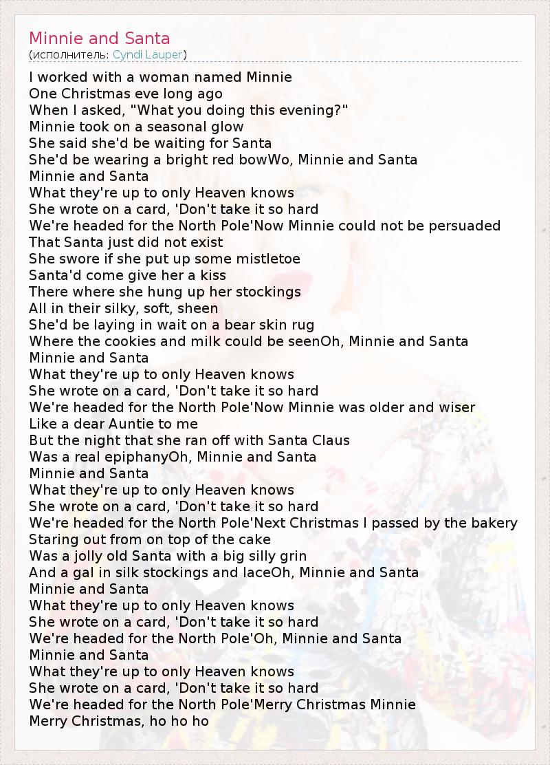 А как ты думаешь, о чем песня "Minnie and Santa" ?