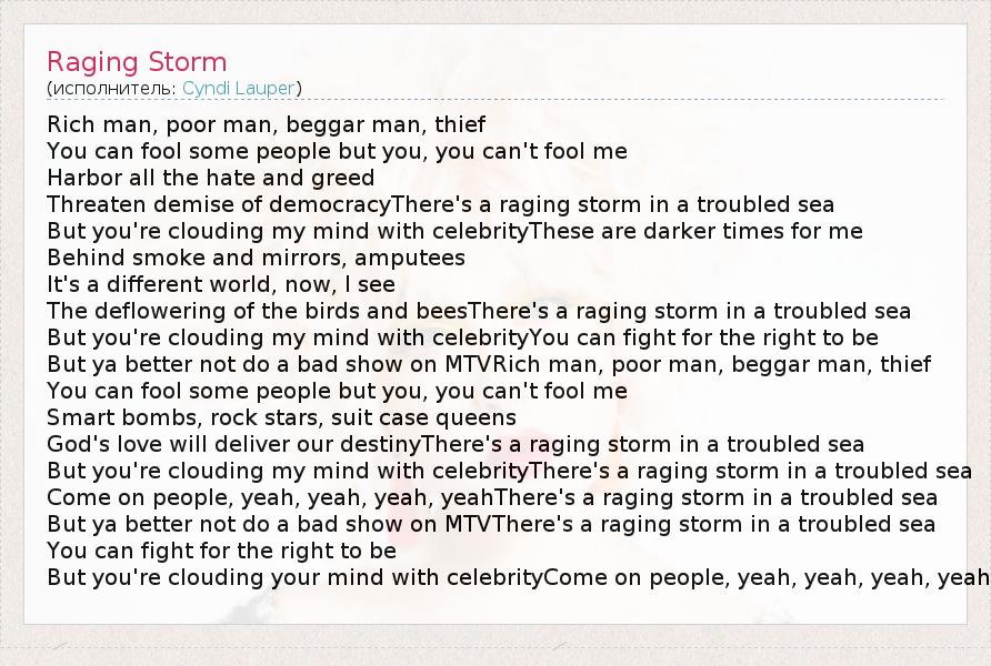 А как ты думаешь, о чем песня "Raging Storm" ?