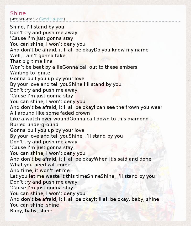 And don't be afraid, it'll all be okayIt'll all be okay, baby, shine