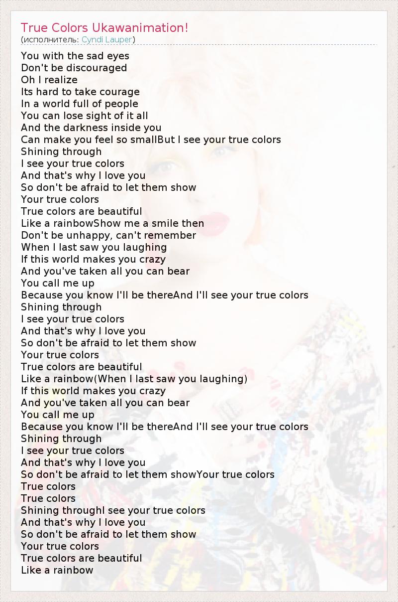 ГлавнаяИсполнителиCyndi LauperTrue Colors Ukawanimation!