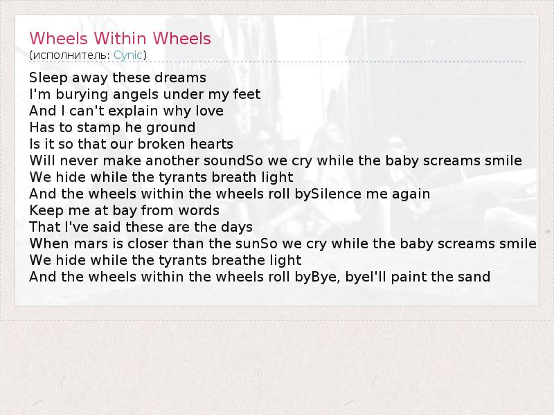 А как ты думаешь, о чем песня "Wheels Within Wheels" ?