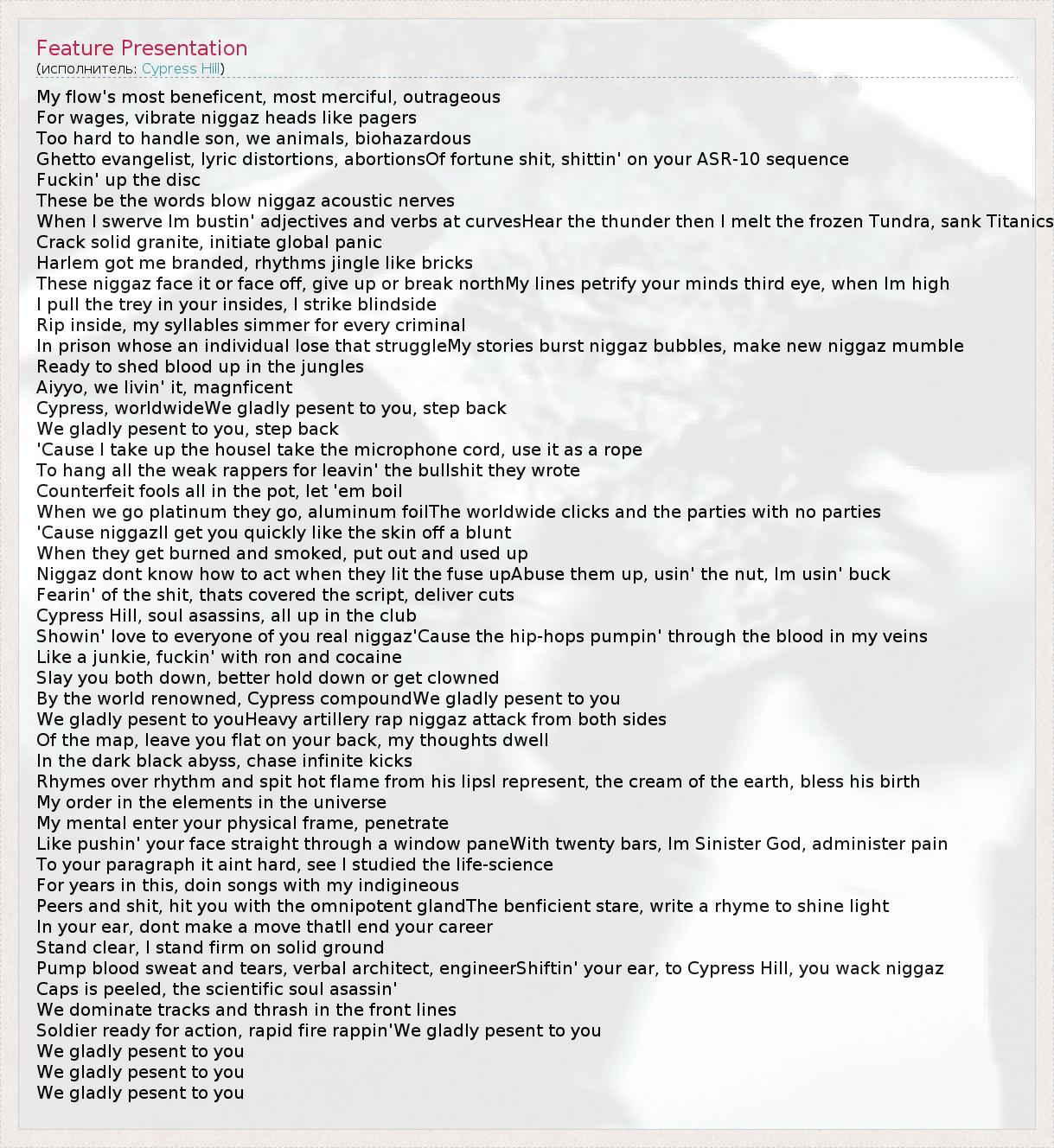 А как ты думаешь, о чем песня "Feature Presentation" ?