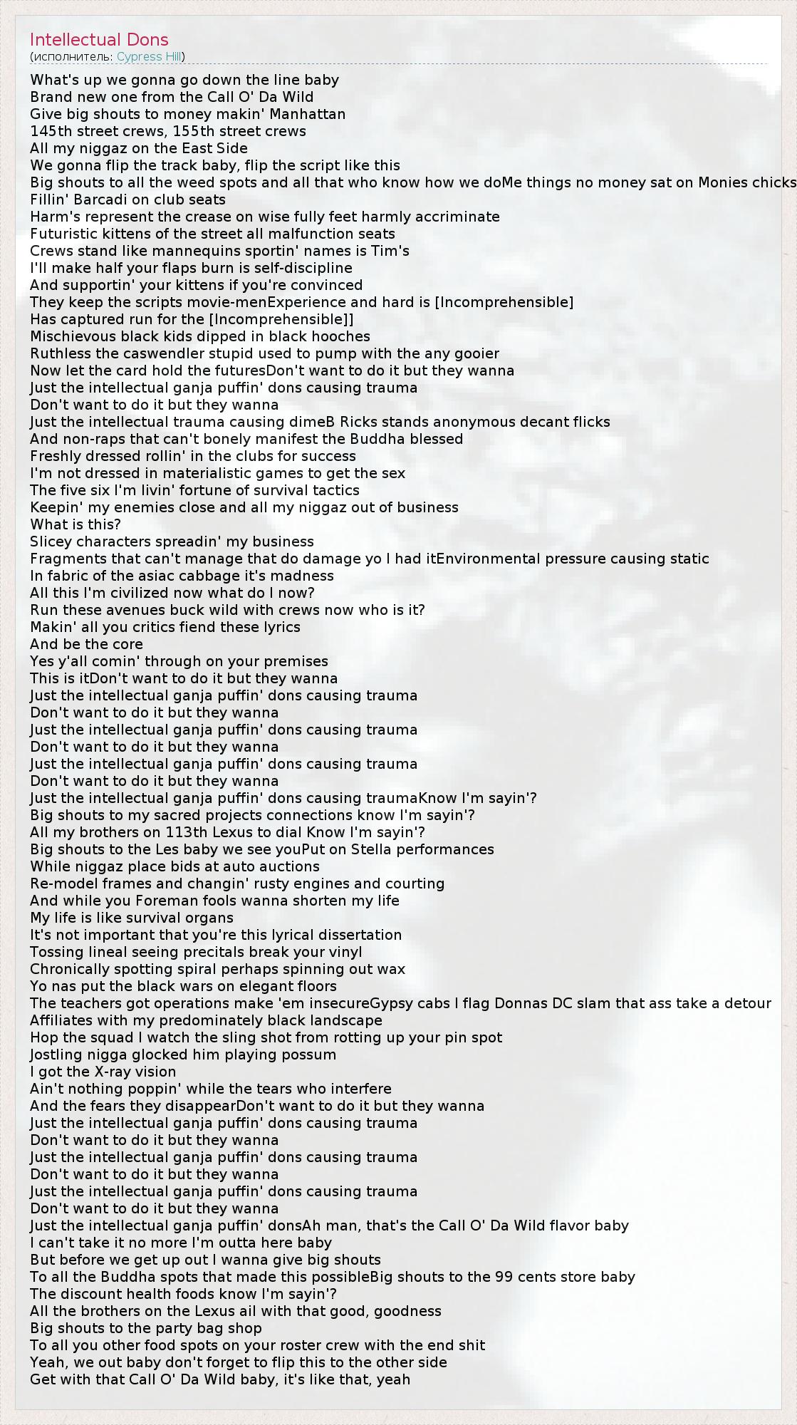 А как ты думаешь, о чем песня "Intellectual Dons" ?