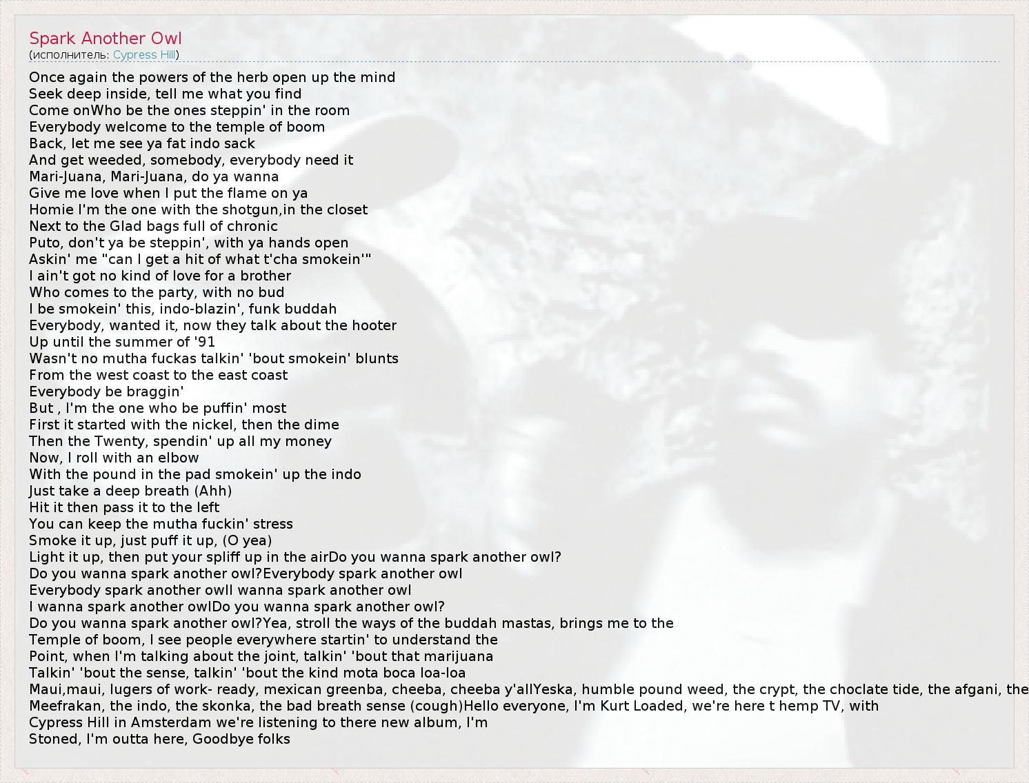 А как ты думаешь, о чем песня "Spark Another Owl" ?