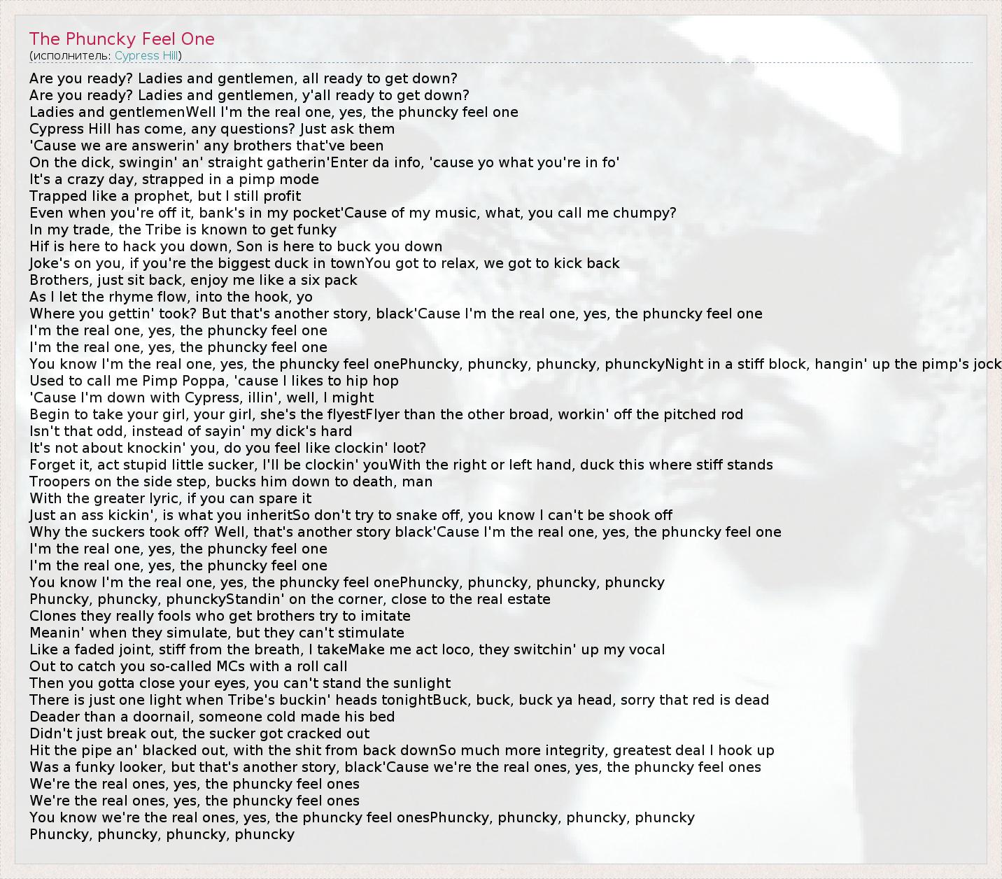 You know I'm the real one, yes, the phuncky feel onePhuncky, phuncky, phuncky, phuncky