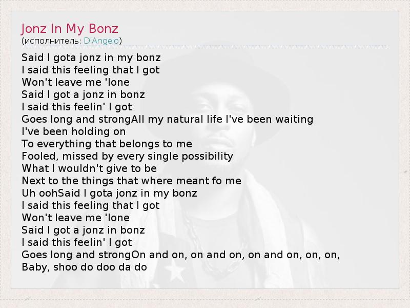 А как ты думаешь, о чем песня "Jonz In My Bonz" ?