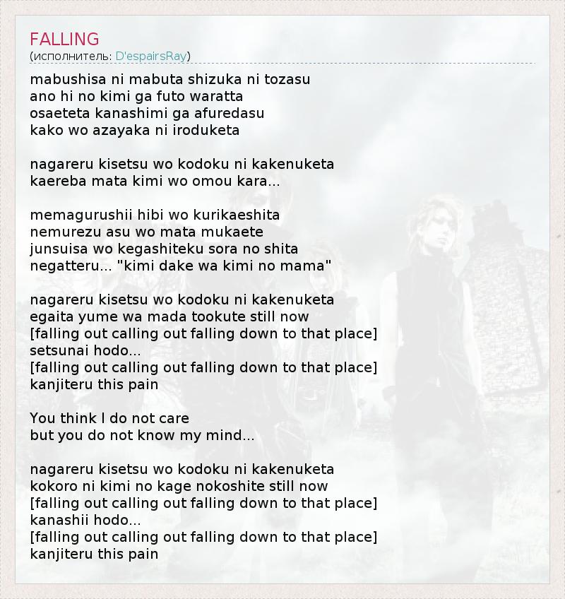 Это интересно:D’espairsRay - одна из первых вижуал кей групп, порадовавших своим приездом зарубежных фанатов. С тех пор они неоднократно выступали в Европе и Северной Америке.Тяжелый индастриал метал (первый альбом в частности), прекрасно звучит вместе с замечательным голосом HIZUMI, способного исполнять как гроулинг и скрим, так и красивейшие мелодии. Их внешний вид... продолжение