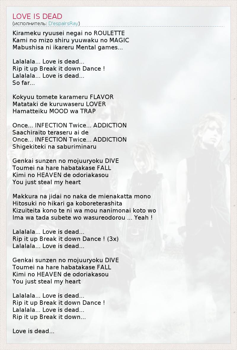 А как ты думаешь, о чем песня "LOVE IS DEAD" ?