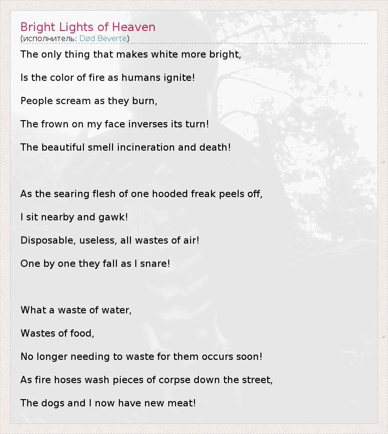 А как ты думаешь, о чем песня "Bright Lights of Heaven" ?