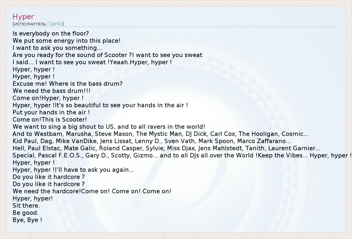 А как ты думаешь, о чем песня "Hyper" ?