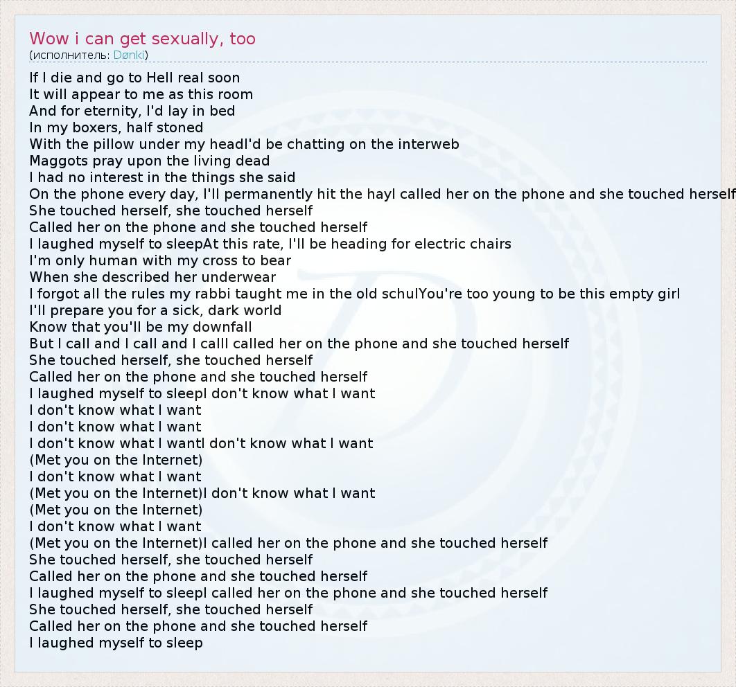 А как ты думаешь, о чем песня "Wow i can get sexually, too" ?