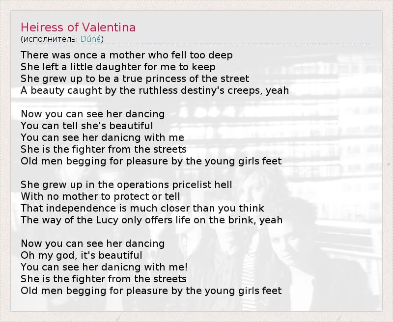 А как ты думаешь, о чем песня "Heiress of Valentina" ?