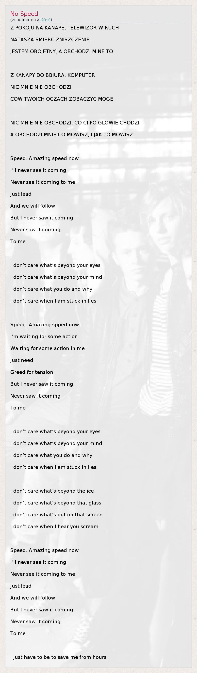 А как ты думаешь, о чем песня "No Speed" ?