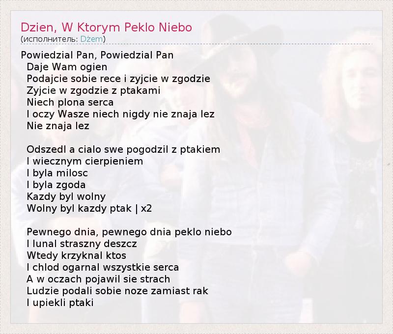 ГлавнаяИсполнителиDżemDzien, W Ktorym Peklo Niebo