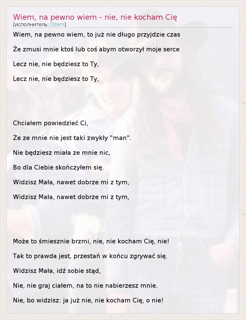 ГлавнаяИсполнителиDżemWiem, na pewno wiem - nie, nie kocham Cię