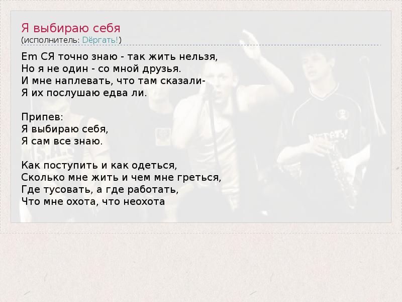 ГлавнаяИсполнителиDёргать!Я выбираю себя