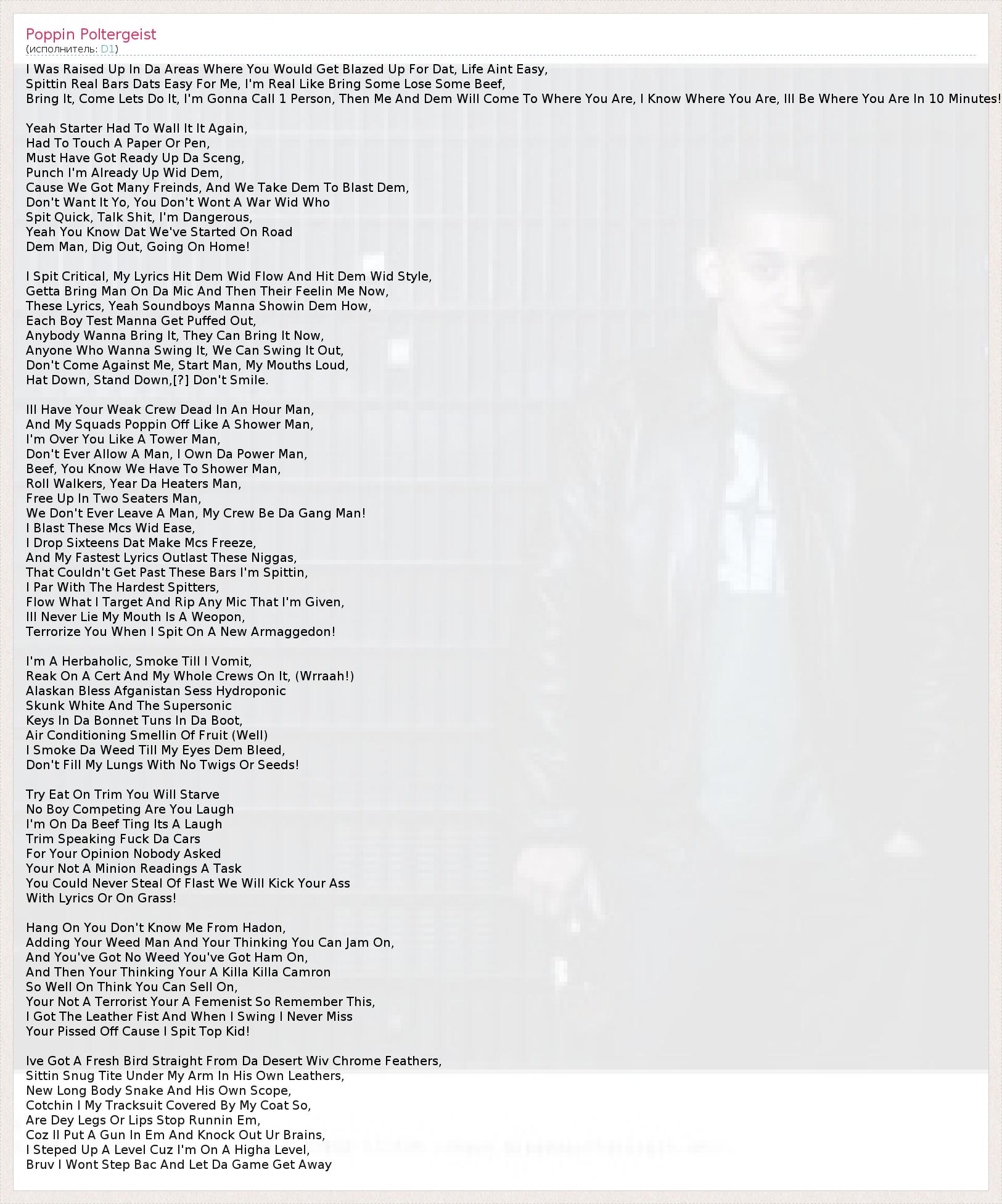 ГлавнаяИсполнителиD1Poppin Poltergeist