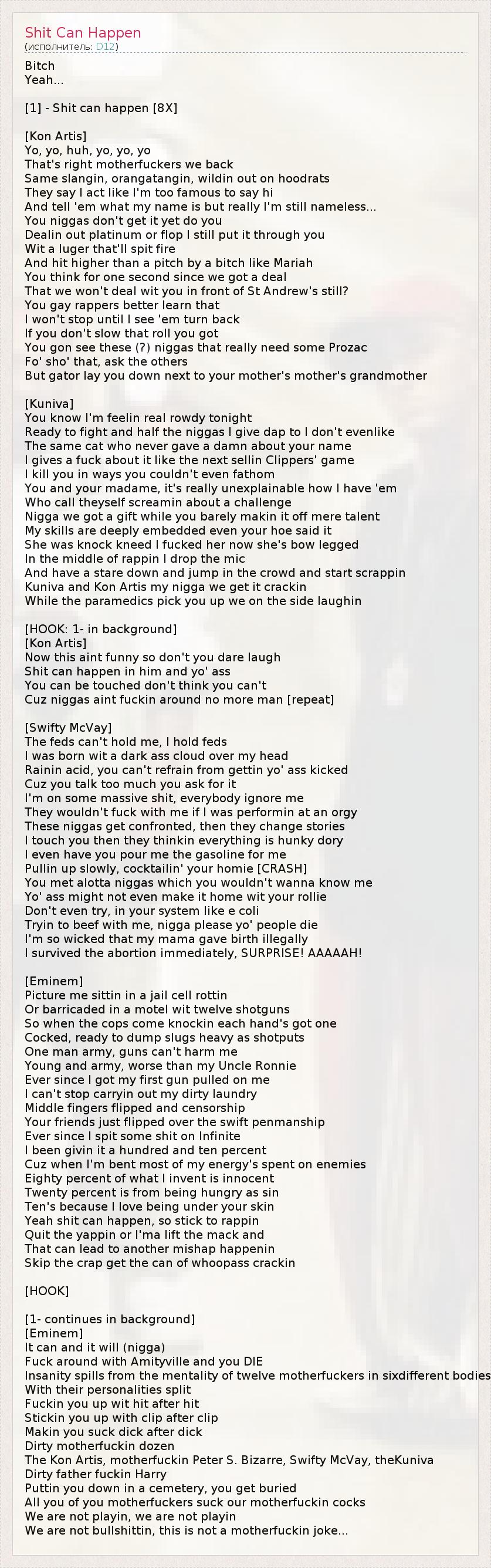 А как ты думаешь, о чем песня "Shit Can Happen" ?