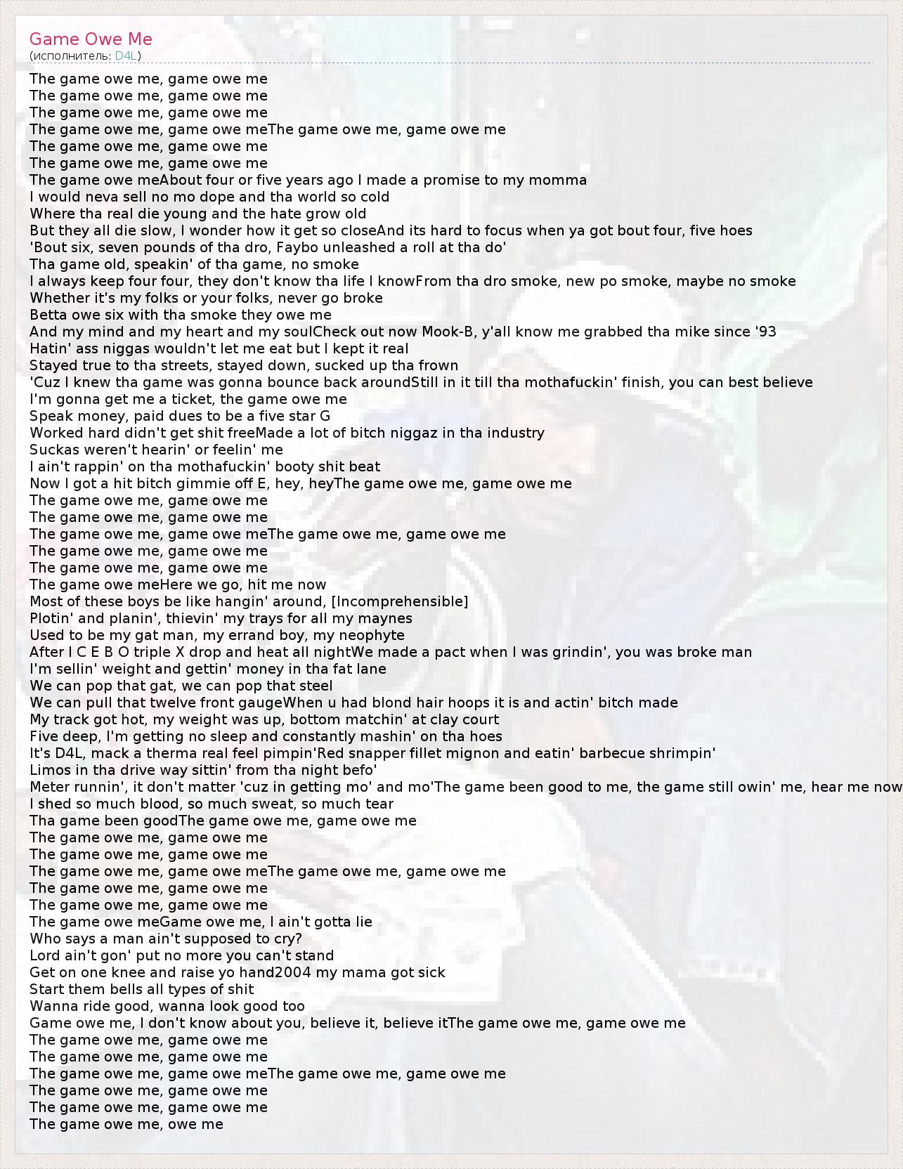 А как ты думаешь, о чем песня "Game Owe Me" ?