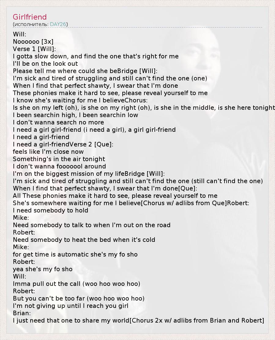 А как ты думаешь, о чем песня "Girlfriend" ?