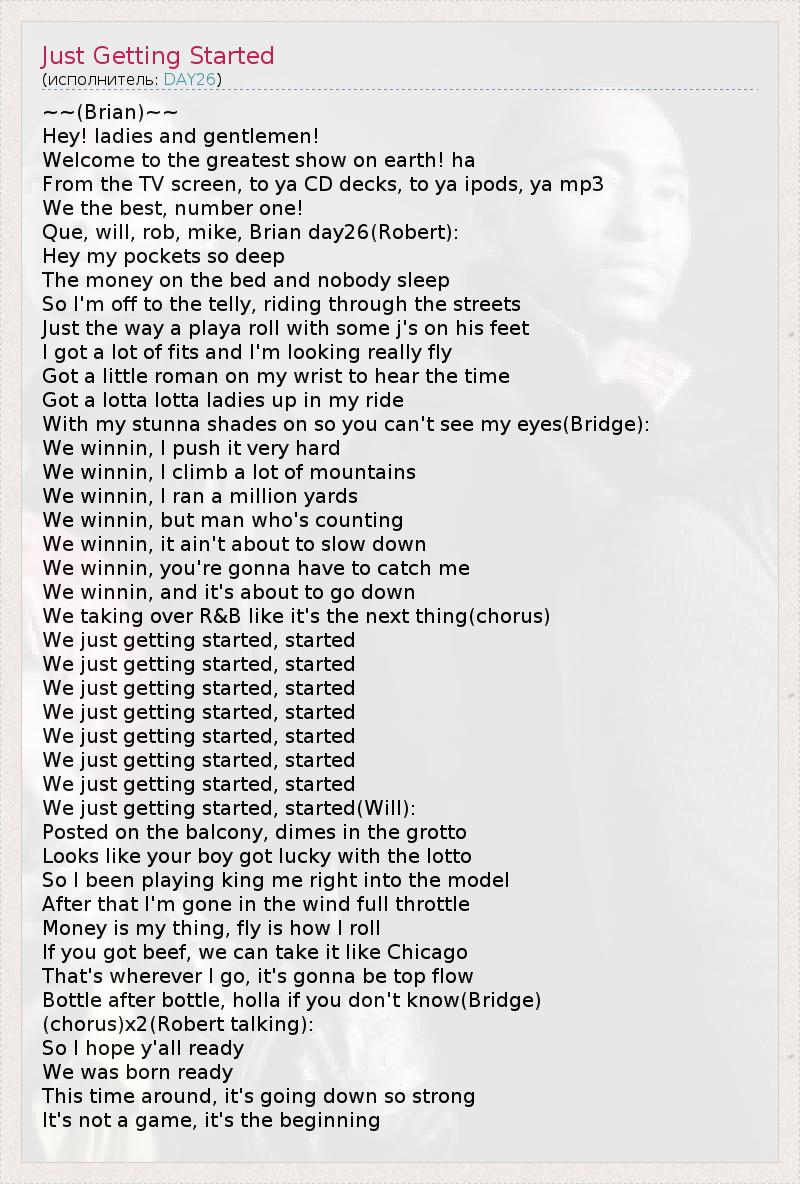 ГлавнаяИсполнителиDAY26Just Getting Started