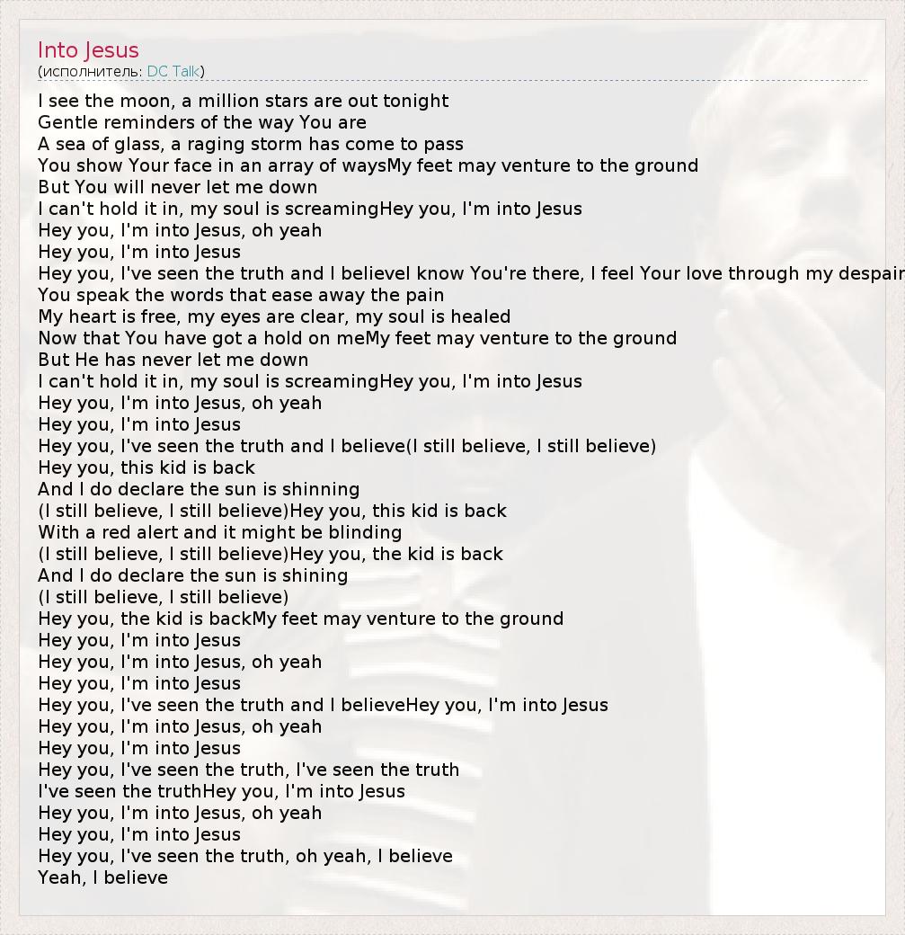 Hey you, I've seen the truth and I believeHey you, I'm into Jesus