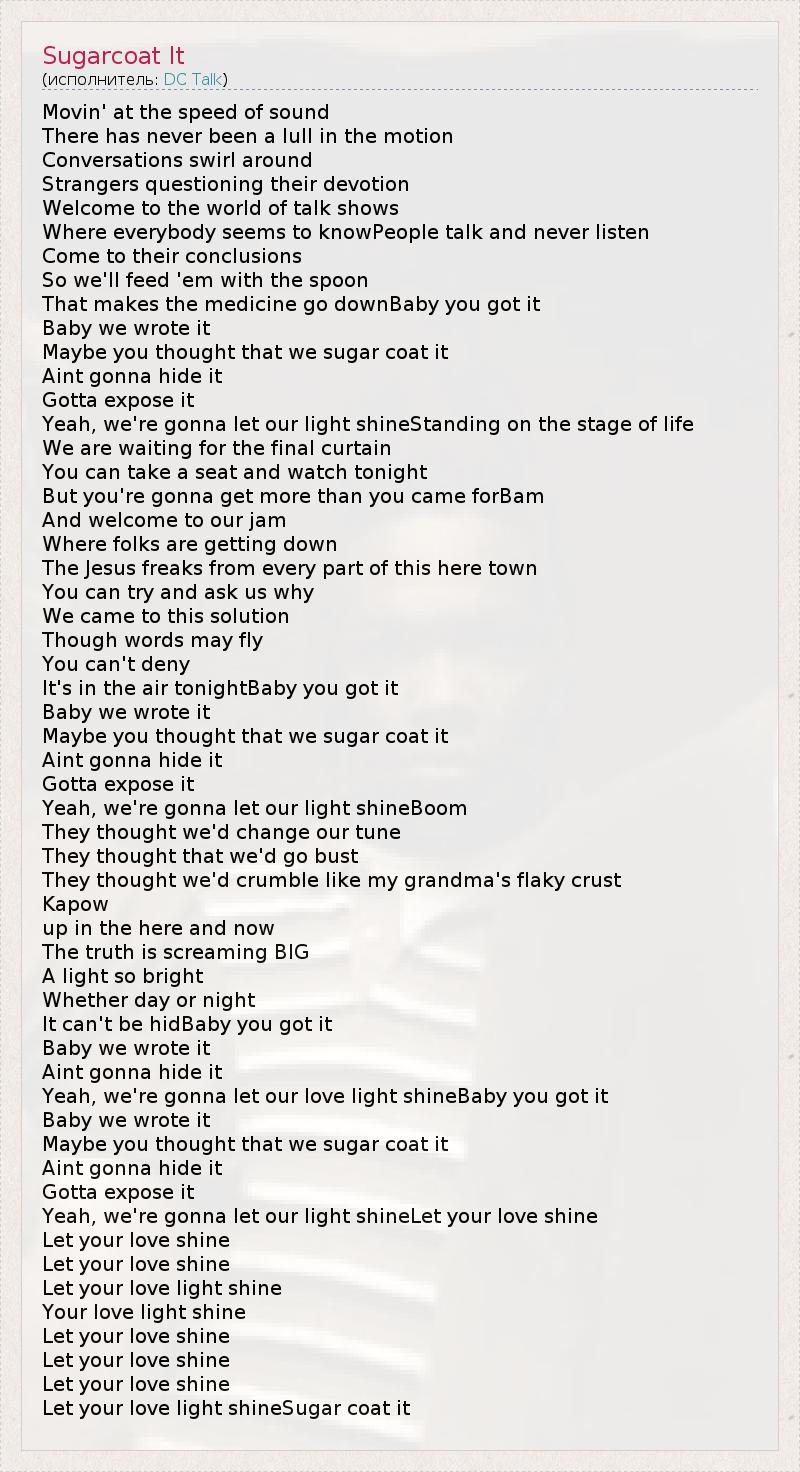Let your love light shineSugar coat it