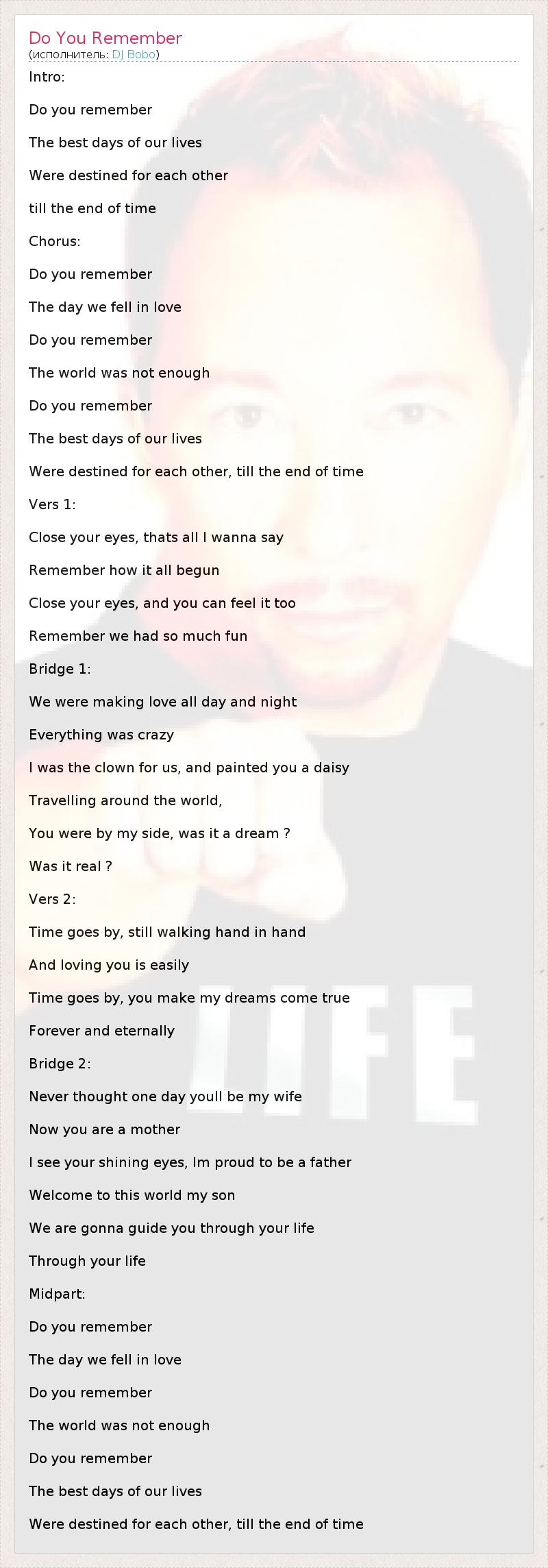 А как ты думаешь, о чем песня "Do You Remember" ?