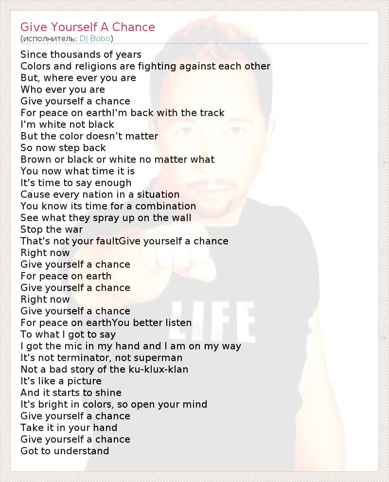 А как ты думаешь, о чем песня "Give Yourself A Chance" ?