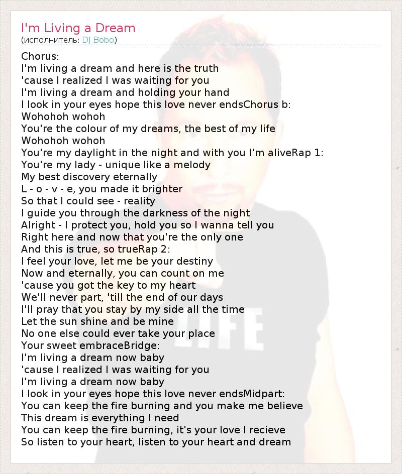 А как ты думаешь, о чем песня "I'm Living a Dream" ?