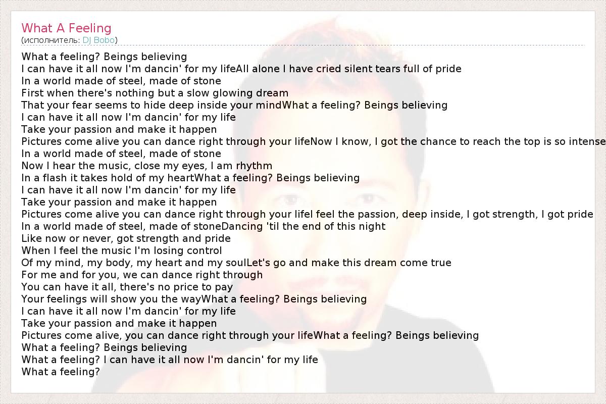 А как ты думаешь, о чем песня "What A Feeling" ?