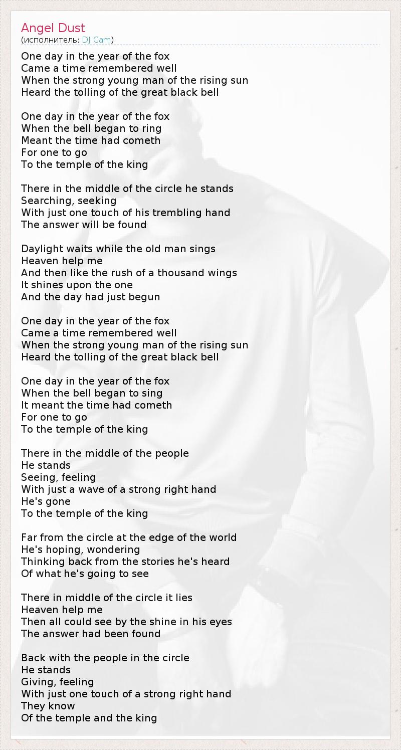 А как ты думаешь, о чем песня "Angel Dust" ?