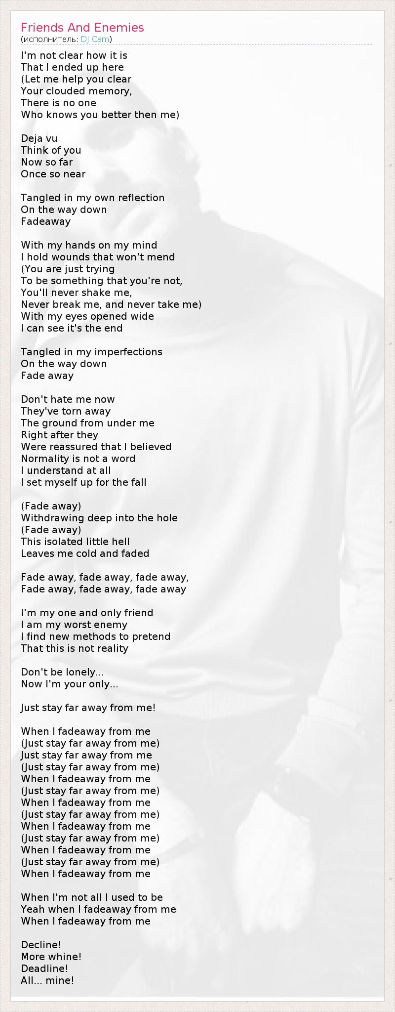 А как ты думаешь, о чем песня "Friends And Enemies" ?