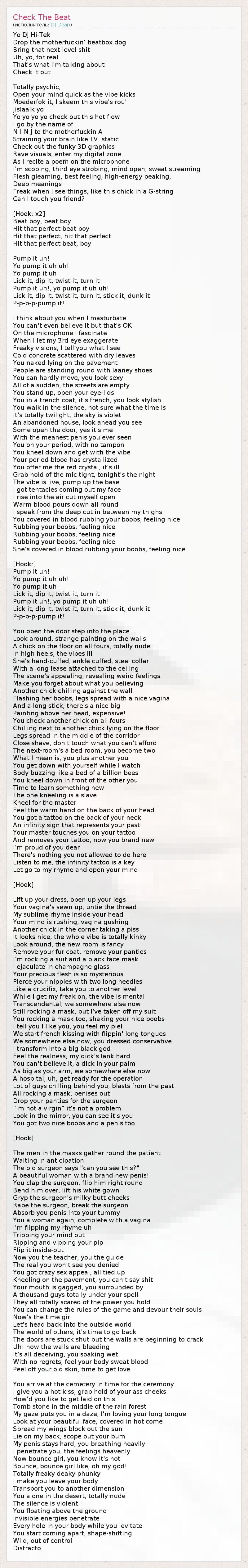А как ты думаешь, о чем песня "Check The Beat" ?