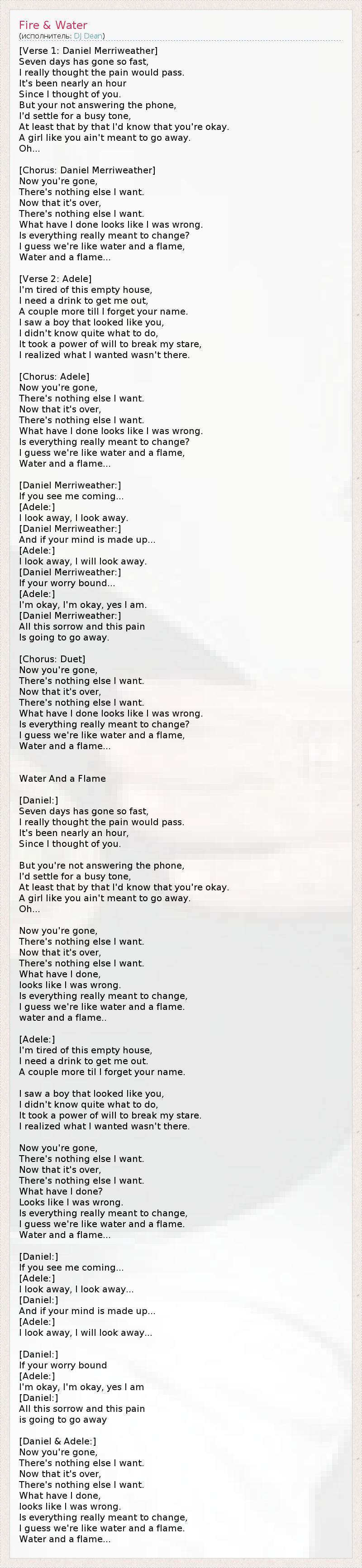 Вода и пламя (перевод Владислав Быченков из Москвы)