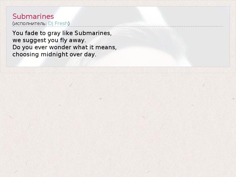 Это интересно:Fresh как истинный британец крайне вежлив, спокоен и тихо говорит, но его ярко зеленые глаза пылают огнем как у тигра в поэме Уильяма Блэйка. Создатель самых сумасшедших мелодий и ритмов скрывает зверя, живущего в нем, за маской тихого человека. DJ Fresh, ака Dan Stein – 36-летний музыкант, удостоенный звания Best Producer на престижном Knowledge Drum&Bass Awards в 2003 году. Он уже вписал свое имя в историю drum&bass... продолжение